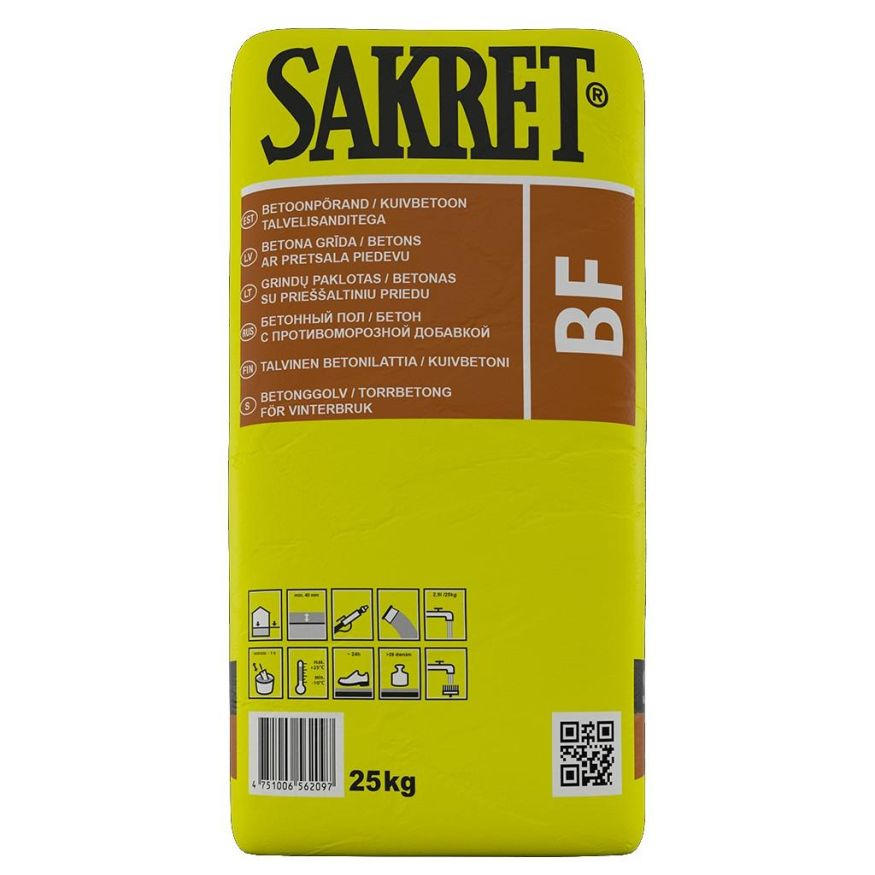Talvine kuivbetoon SAKRET ВF tuleb segada puhtas nõus või segumasinas sooja puhta veega tükivabaks massiks. Paigaldada betoon ühtlaselt raketisse ning tihendada, tasandada ja siluda. Ehitise deformatsioonivuuke ei tohi betooniga katta. Põrandate valamisel kasutada armatuurvõrku. Kaitsta värskelt valatud pindu otsese päikesepaiste, sademete, külmumise ja tugeva tuule eest, soovitav on järelniisutus. Põrandate valamiseks on vähim optimaalseim kihipaksus 40 mm. Järgida tsementsegudega talvistes tingimustes töötamise nõudeid! Valatud pinnad on käidavad ja plaaditavad 24 h möödumisel valamisest.
